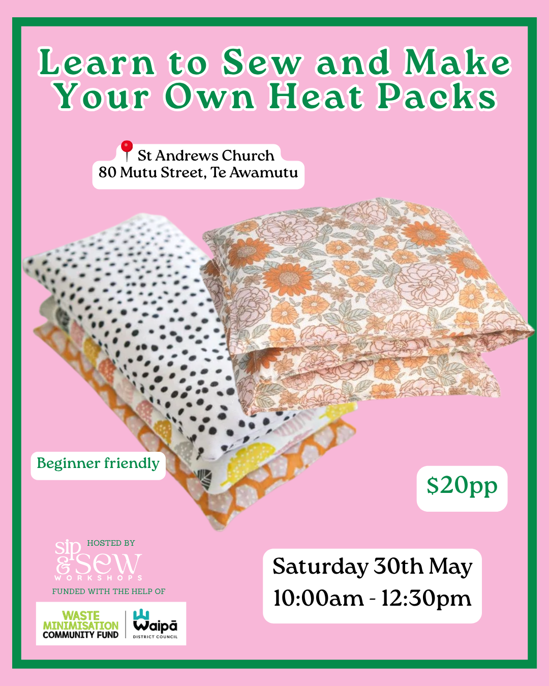 This workshop is all about learning simple and effective ways to reuse fabric, helping to keep it out of landfill, plus you get a stash of heat packs for the winter to come.